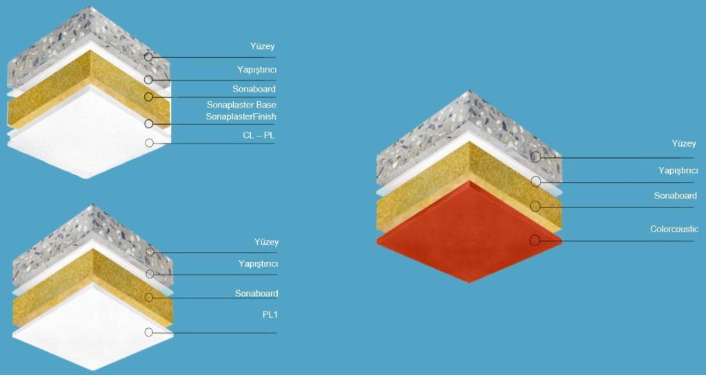 Bu bağlamda, etkili bir gürültü kontrolünün sağlanabilmesi için hacim akustiğinin bütüncül bir yaklaşımla ele alınması gereklidir. Uygun ses yutucu malzemelerin, mekanın geometrisi ve kullanım senaryoları dikkate alınarak doğru miktar ve konumda uygulanması, arka plan gürültü seviyelerinin kontrol altına alınmasında belirleyici bir rol oynar. Uluslararası standartlarda tanımlanan akustik konfor koşullarına ulaşılabilmesi için, mimari tasarım sürecinde akustik çözümlerin erken tasarım aşamalarında planlanması; kullanıcı sağlığının korunması, konuşma anlaşılabilirliğinin artırılması ve mekansal performansın sürdürülebilir biçimde iyileştirilmesi açısından uzun vadeli faydalar sağlar. Adım İnşaat olarak, bu kapsamda uyguladığımız akustik iyileştirme çözümlerimiz Sonacoustic ve Sonaspray sistemlerimizin detayları aşağıda sunulmuştur.