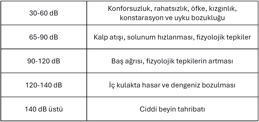 *Desibel (dB) sayısına göre olası problemler